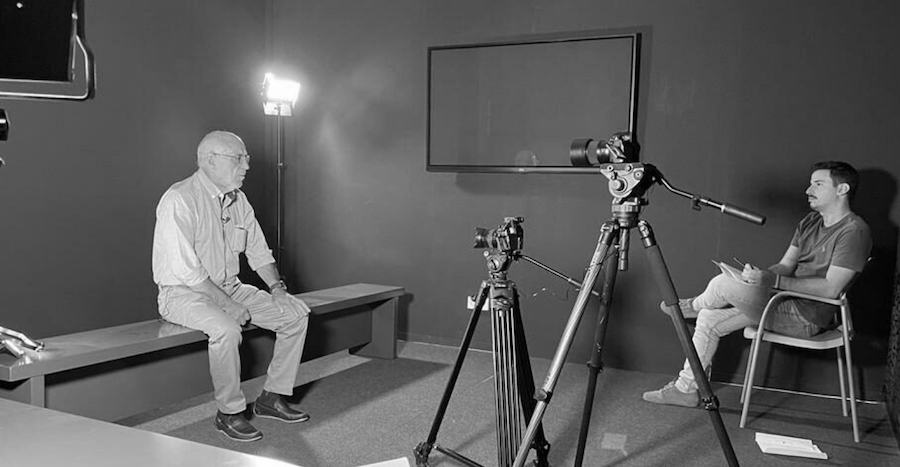 Imagen del trabajo que está llevando a cabo Gonzalo Vicente Pagán como archivero municipal para la conservación del pasado unionense a través de las voces de personas que han vivido o conocido sus episodios, lo que servirá para completar el capítulo documental.