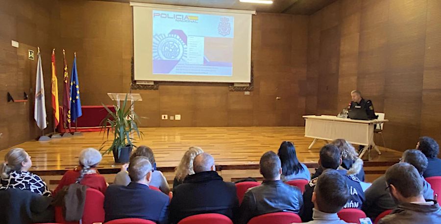La Policía Nacional ha impartido, en el salón de actos del Ayuntamiento de La Unión, una jornada informativa sobre los delitos de ocupación ilegal y sobre los protocolos de actuación policial con personas afectadas por enfermedad mental.