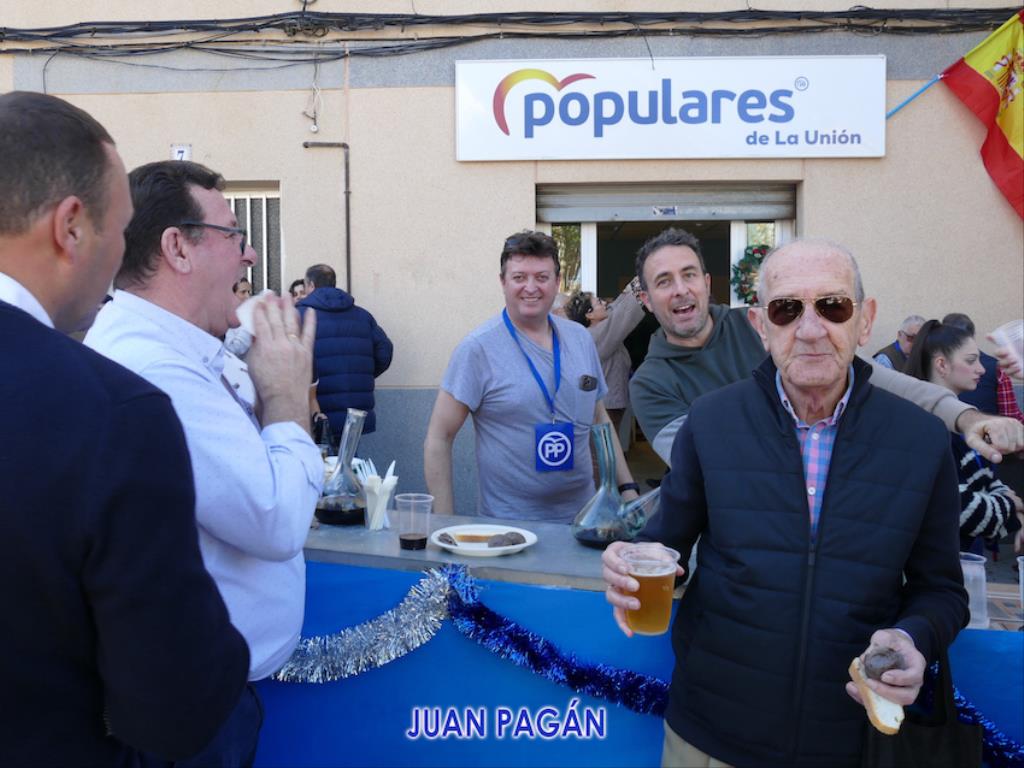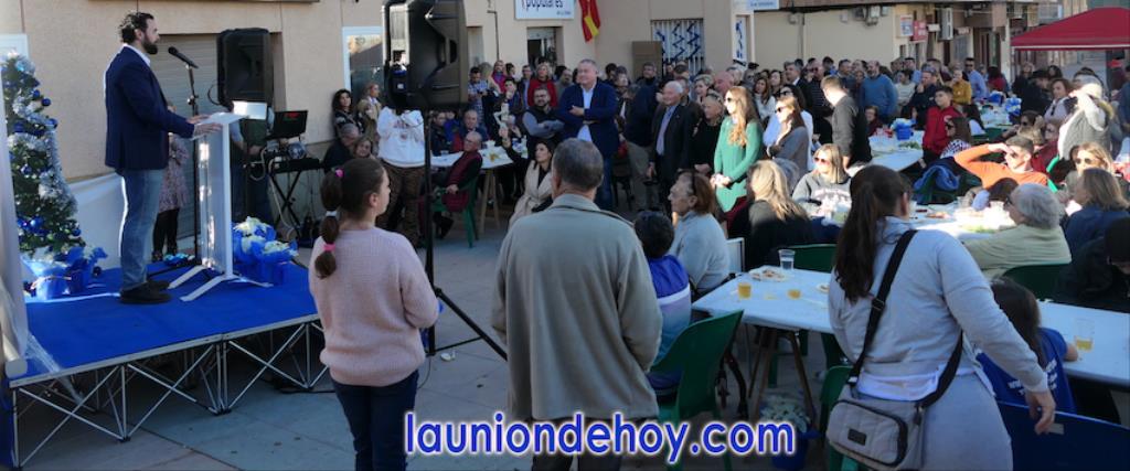 La familia de los 'populares' vivieron el sábado una gran convivencia de ambiente navideño con una masiva presencia de asistentes, que, según algunos de los organizadores, ha superado a las ediciones anteriores. También acudieron conocidos representantes de la formación a nivel regional, encabezados por Fernando López Miras, y el senador unionense Francisco Bernabé, quienes se dirigieron a los asistentes junto al secretario general local y candidato a la alcaldía de La Unión, Joaquín G. Zapata. En sus discursos lanzaron numerosas dosis de optimismo hacia el nuevo año y, en especial, hacia las elecciones de mayo, en la que están confiados de que repetirán al frente del gobierno autonómico y regresarán al sillón municipal. Pidieron a todos los presentes que ayudaran en esa labor de conseguir adeptos para esa cita con las urnas, apuntando también que un cambio nacional puede empezar a nivel local y regional. La soledada jornada estuvo acompañada por dos grandes arroces y numerosas y sabrosas viandas. No faltó el brindis por la felicidad de todos.