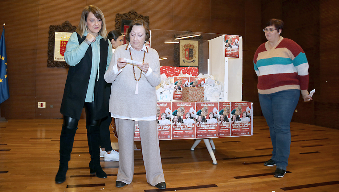 Esta mañana se celebraba el sorteo de los cheques regalo que el ayuntamiento de La Unión otorga en su primera campaña de ayuda al comercio. Ha sido realizado en el salón de actos con la presencia de el alcalde, Pedro López Milán; de la concejala de Comercio, Ana María Rodríguez; y de la concejal de Hacienda, Elena Lozano, que se han encargado de echar los tickes a la urna. Una chica (Nazaret Izquierdo Albaladejo) se ha encargado de sacar las papeletas de los tres ganadores de los cheques de 100, 200 y 300 euros, que tienen que gastar en los comercios de La Unión participantes.
