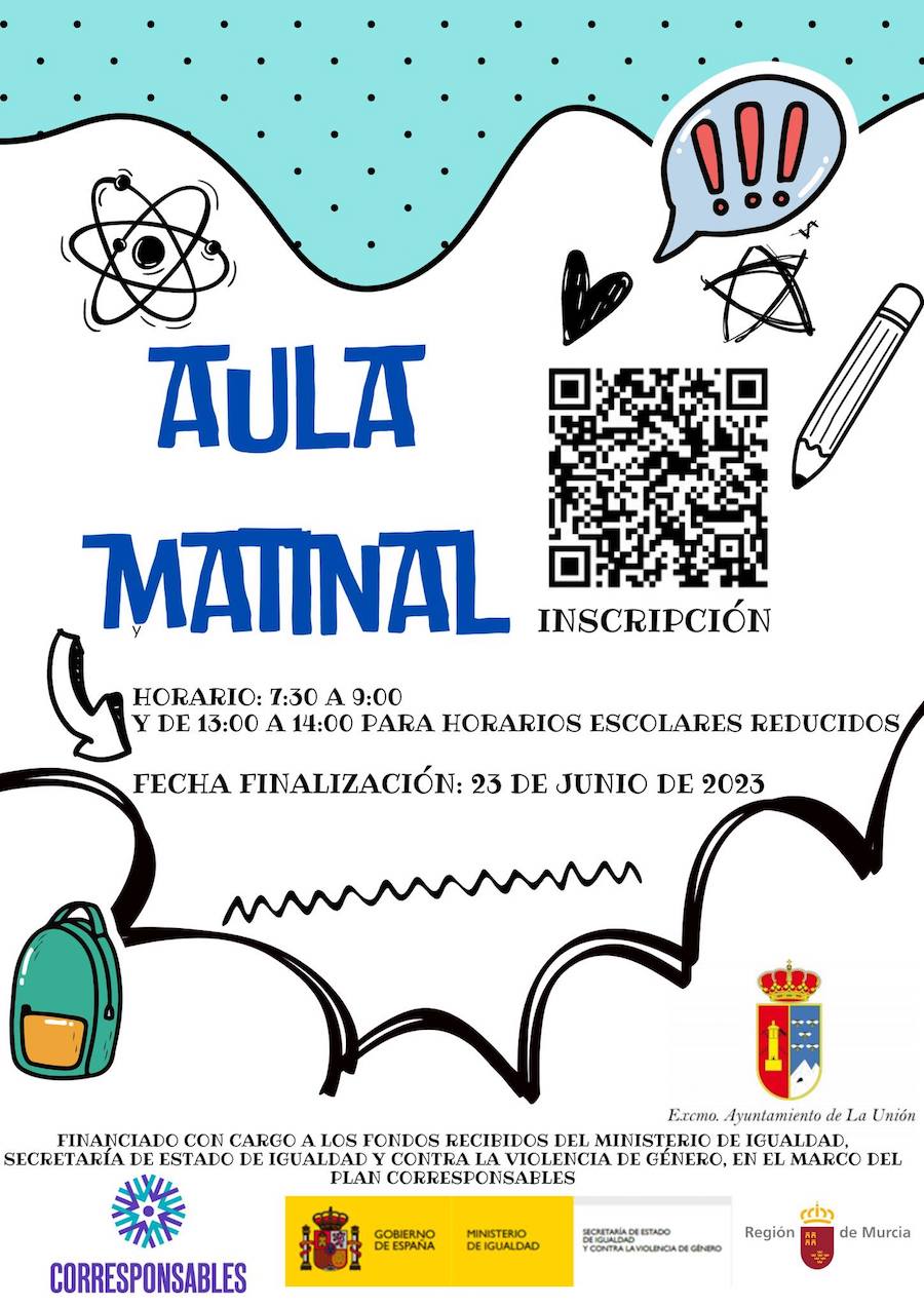 El Aula Matinal se va a realizar hasta junio de 2023, de lunes a viernes de 7:30 a 9:00, y de 13:00 a 14:00, para periodos escolares con horario reducido.