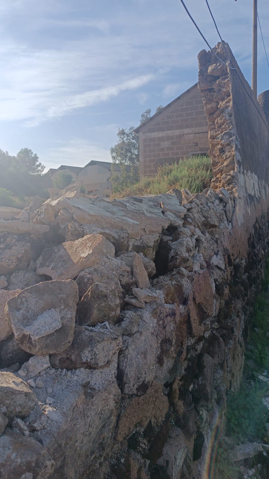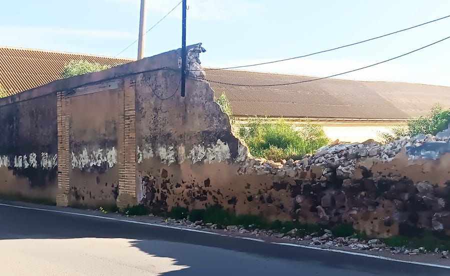 La plataforma 'Portmán Vivo' denuncia que una pared del pueblo costero sufrió un derrumbe parcial y que ha quedado con un alto peligro para viandantes o vehículos que pasen si se produce la caída de sus piedras.