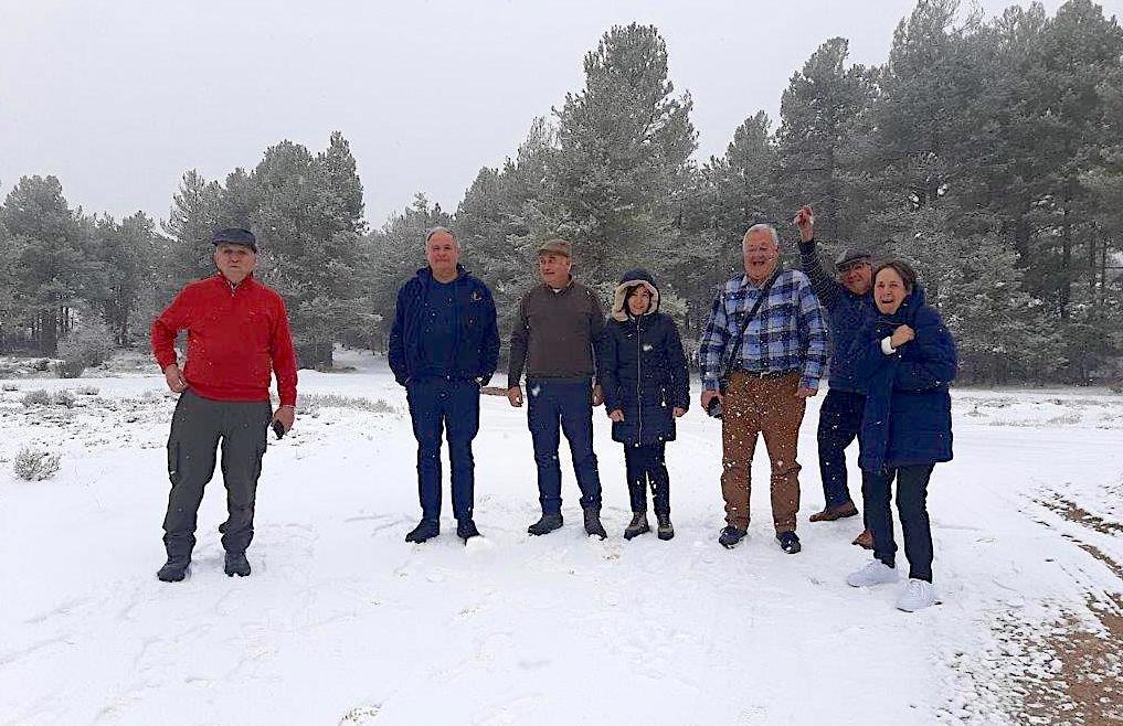 ... por la nieve. Varios miembros del colectivo senderista se han dirigido esta semana a la población de Pontones, en la sierra del Segura (parte suroriental de la provincia de Jaén), para preparar las futuras rutas por esta zona para el proximo mes de septiembre, encontrándose en el recorrido con estos paisajes nevados.