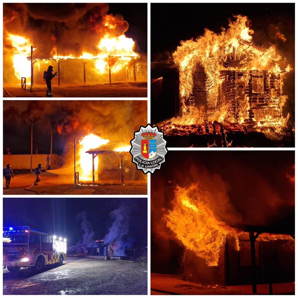 El fuego arrasa la oficina de madera del Parque Minero