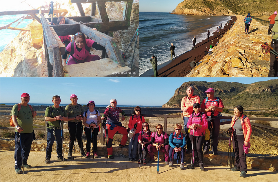 ... en una ruta por la bahía de Portman, donde el colectivo senderista unionense visitó 'el túnel de la verguenza', lugar por donde salieron los dañinos vertidos mineros. Después, recorrido por la playa de Bruno, donde cientos de pescadores intentaban capturar con sus artes las doradas escapadas de los viveros. Siguió la marcha por la batería de la Chapa con regreso hacia el pueblo, visitando 'la casa del Tío Lobo'.