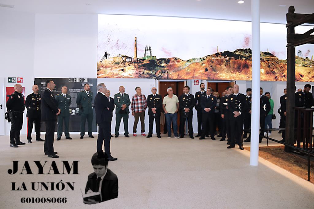Terminada la ceremonia, toda la plantilla de la Policia Local de La Unión se han dirigido, junto con el alcalde, Pedro López Milán, al nuevo Museo Minero, donde ha efectuado una visita.