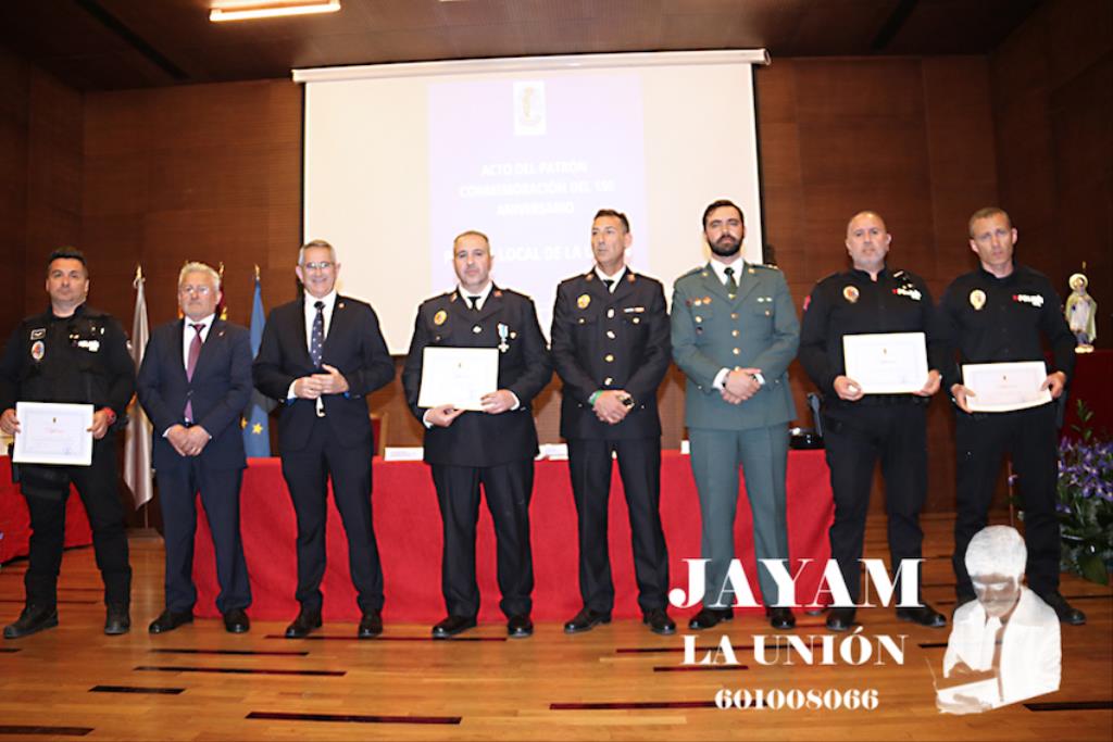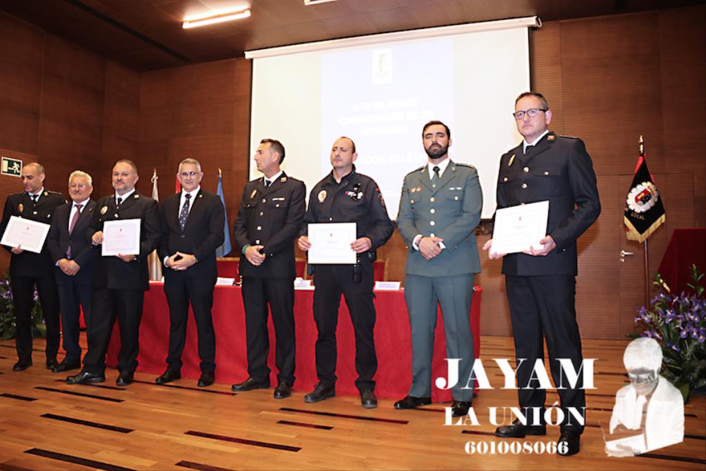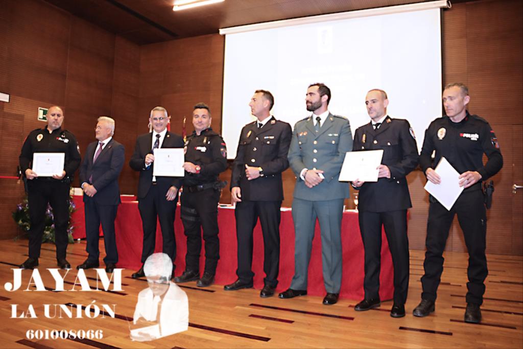 Para terminar la mañana, el salón de actos del Ayuntamiento de La Unión ha acogido el acto institucional de entrega de los reconocimientos a los policías por sus actuaciones en ayuda a los vecinos.