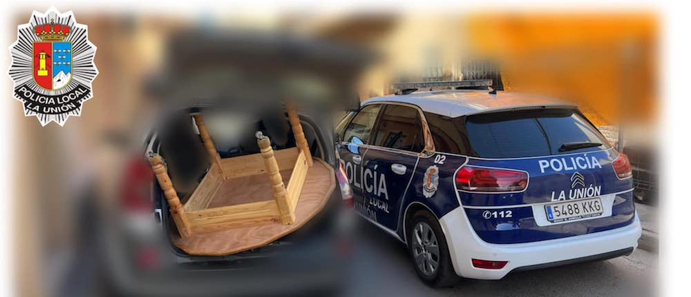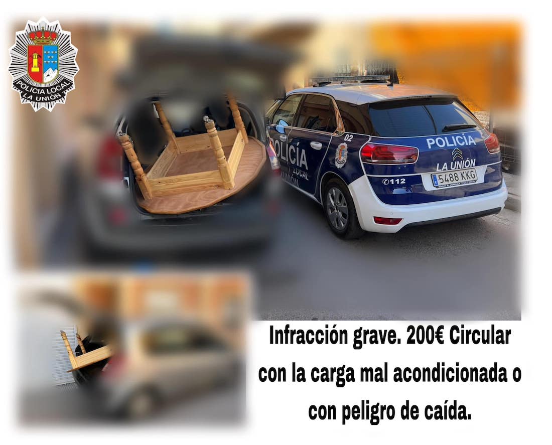 La Policía Local efectuó una denuncia por importe de 200 euros al conductor de un vehículo que llevaba una mesa de madera mal sujeta y con riesgo de caía.
