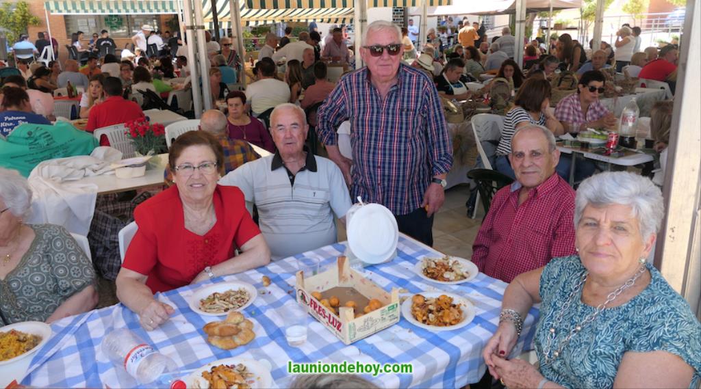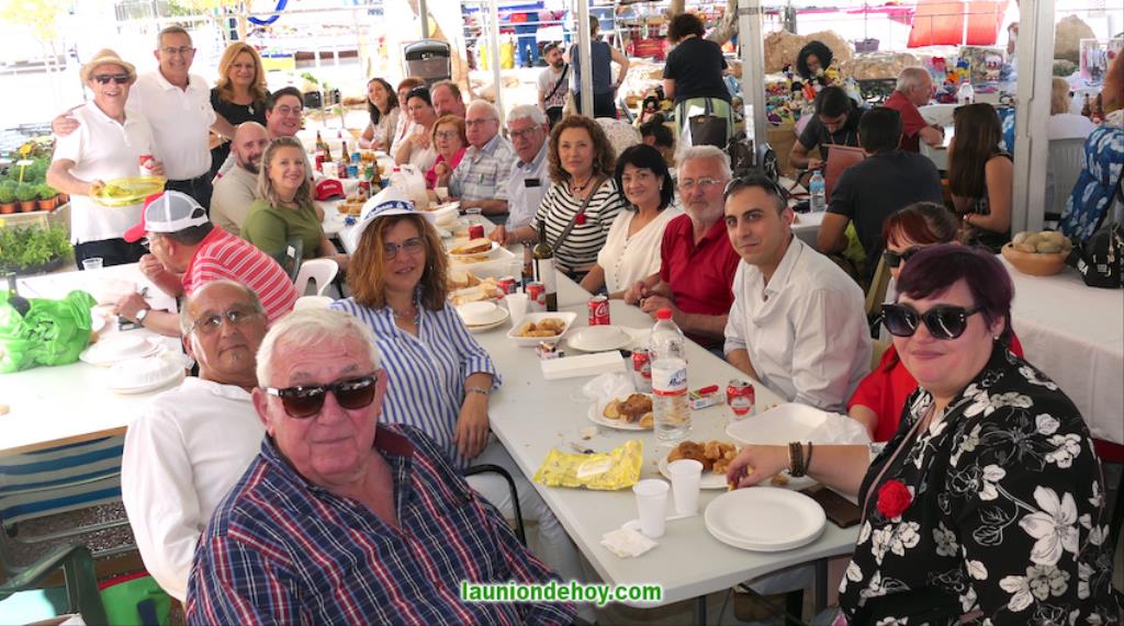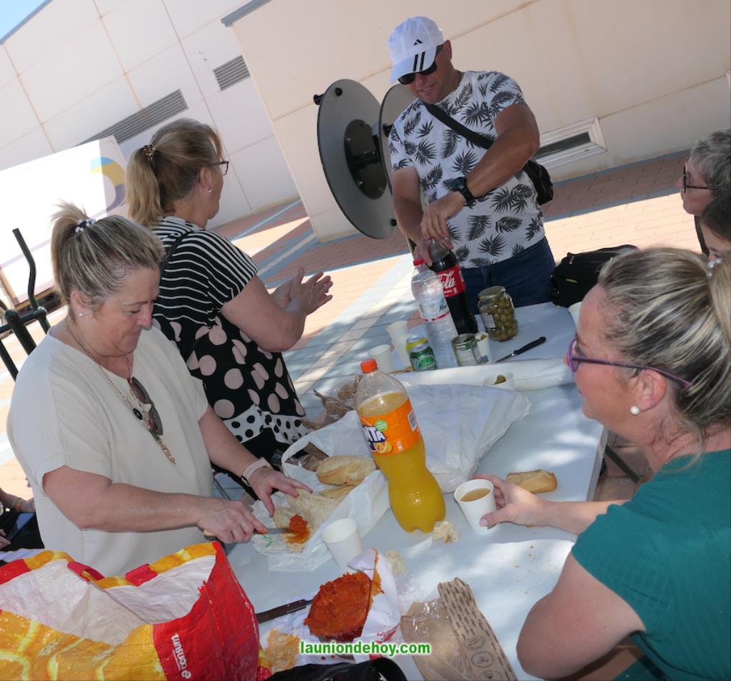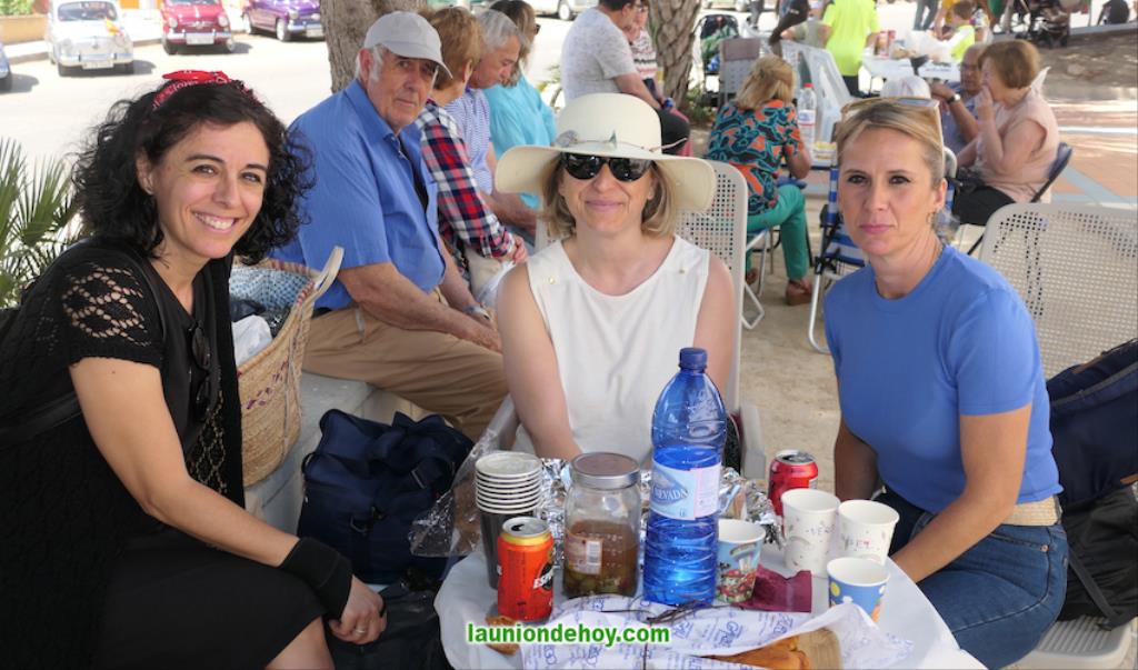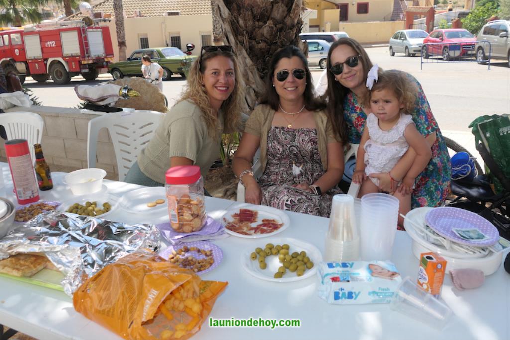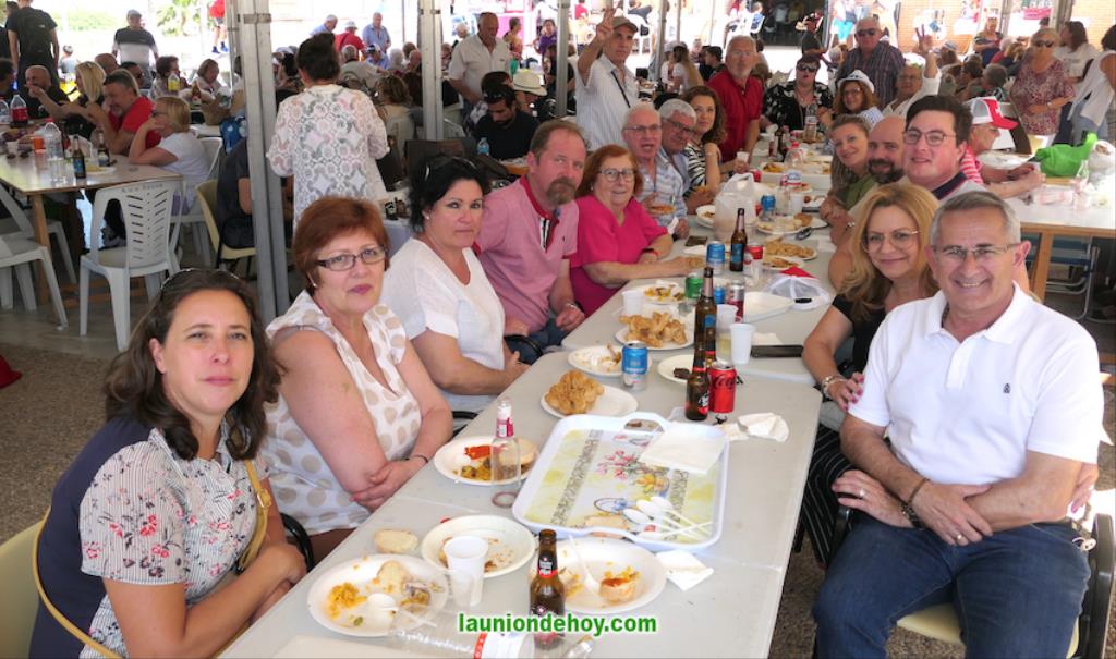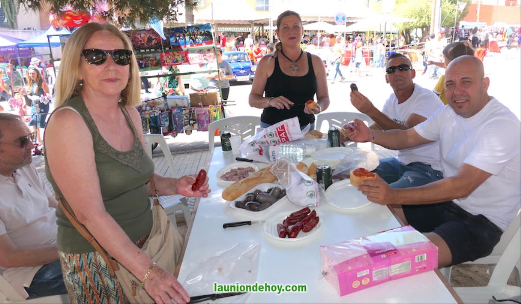 Luego está el capítulo gastronómico con doble vertiente. Por un lado, el gigantesco arroz popular y gratuito, que bastantes asistentes han acompañado de otros manjares traídos de casa. A esto se suman las mesas periféricas de grupos de familiares y de amigos en el entorno del pabellón deportivo, todas cargadas de manjares de la tierra.