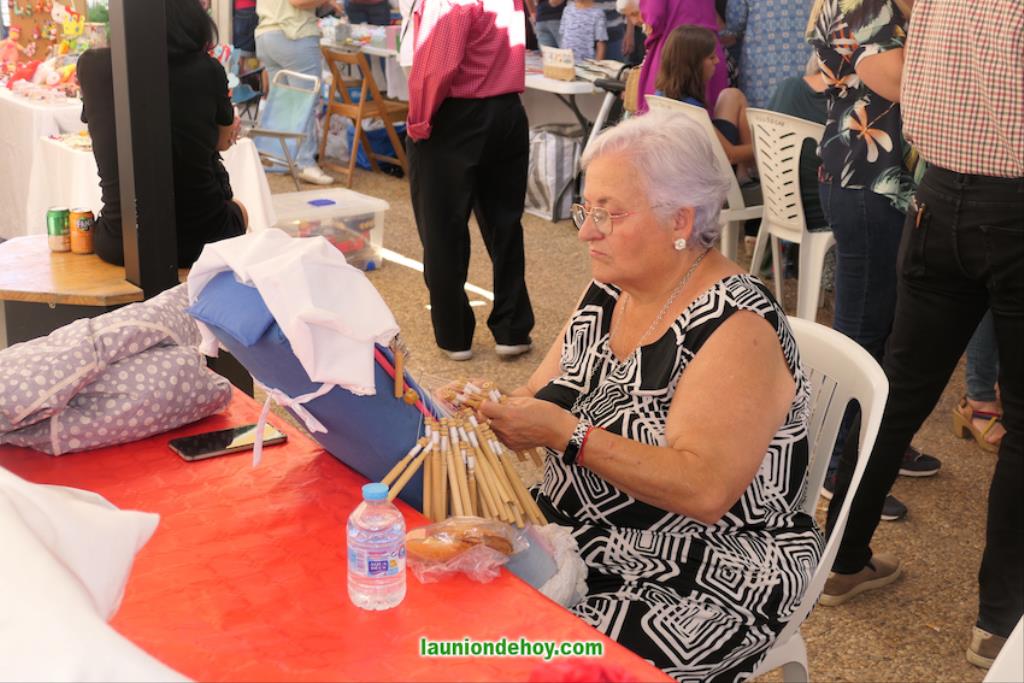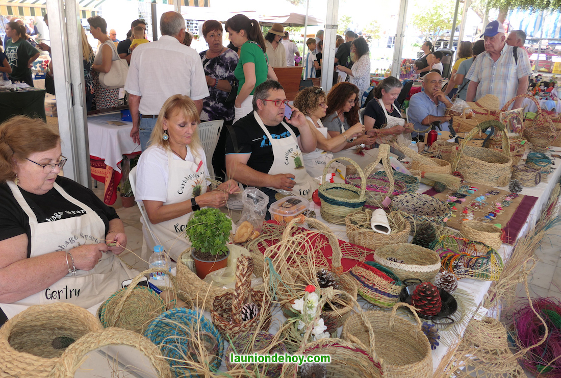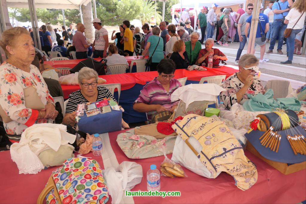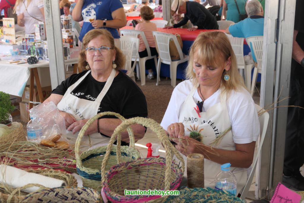 Hoy la propuesta era realmente buen. Desde muestras de bolilleras, pachword, manualidades y, entre otros, los numerosos artistas del esparto, con un matrimonio llegado de Dolores de Pacheco y el amplio colectivo cartagenero de Carthago Spartaria. También estaban distribuidos bajos las carpas puestos de venta embutidos, verduras, plantas, cerámica, bisutería y pan. Al hilo de esto último, el 'Tío Raimundo', con su vestuario tradicional, nos explicaba que la saga de panaderos de Roche comenzó con Antonio y Rosario, quienes tuvieron hijos a Antonio, Lola, Juan Félix y Brígido, quien con Flora tuvo como hijos a Antonio, Javi y Brígido. "Este último, quien ejercía la profesión en Alumbres, se ha jubilado y ya no nos quedan panaderos nativos del pueblo", exponía.