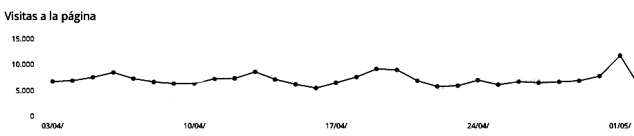 El periódico independiente de La Unión comenzó sobre las seis mil entradas únicas diarias en los primeros días, motivado en gran parte por la celebración de la Semana Santa Minera y culminó el uno de mayo con un grandísima respuesta al artículo publicado sobre el mercadillo de tradiciones de Roche. Al final, una media diaria de 6.221. ¡Fantástico!