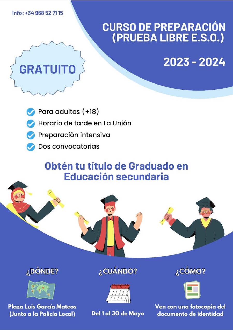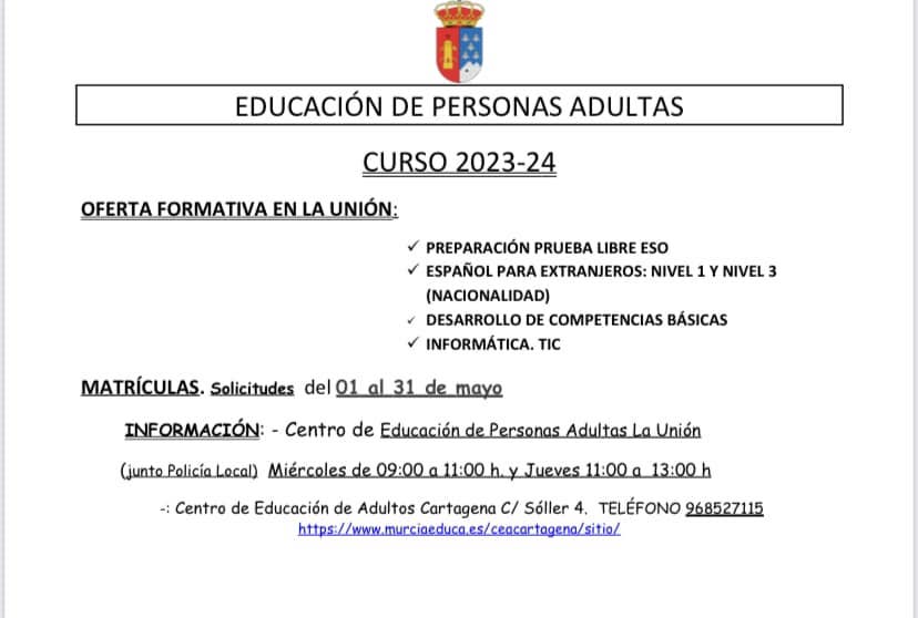 El plazo finaliza el 31 de mayo, está dirigido a mayores de 18 años de edad, es gratuito y la oferta formativa abarca a la preparación de la prueba libre de ESO, español para extranjeros (niveles 1 y 3), desarrollo de competencias básicas e informática, informan desde el consistorio.