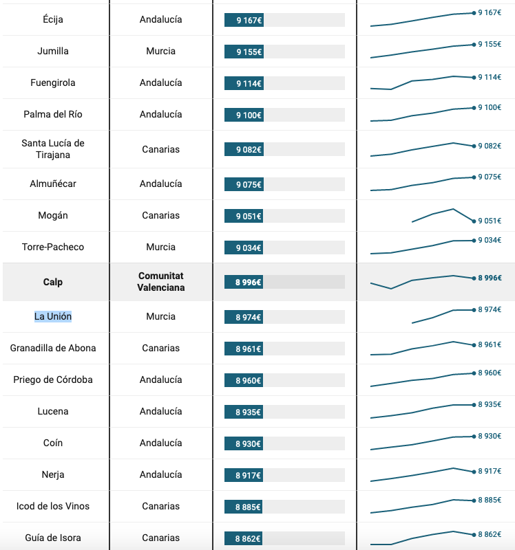 Murcia se sitúa como el municipio con más renta por habitante de entre aquellos que cuentan con más de 20.000 habitantes en la Región. De media, cada uno de sus habitantes tiene una renta neta disponible de 11.778 euros según los datos facilitados por el INE con fecha de 2020. Le sigue muy de cerca Molina de Segura, con 11.715 euros. Cartagena es tercera con 11.092 euros. Alhama es la cuarta población más rica con una media de 10.654 euros. El 'top 5' lo cierra San Javier, con 10.424 euros de media. En el sexto puesto de este ránking se sitúa Las Torres de Cotillas, con 10.423 euros. Le siguen, por este orden, Caravaca (9.965), Cieza (9.919), Alcantarilla (9.885) y Lorca (9.772). El décimo plrimer puesto es para Águilas con 9.658 euros, seguida por Totana (9.555), San Pedro del Pinatar (9.241), Jumilla (9.155), Torre Pacheco (9.034), La Unión (8.974) y Mazarrón (8.826). Las 17 localidades de la Región incluidas tendrían una renta media neta de unos 10.004 euros anuales por habitante, un registro que situaría a esta región como la segunda con menos nivel adquisitivo solo por delante de Andalucía (10.000 euros). En el caso de La Unión, la cifra está por debajo (8.974) pese a que se va en progresión positiva en los años precedentes.