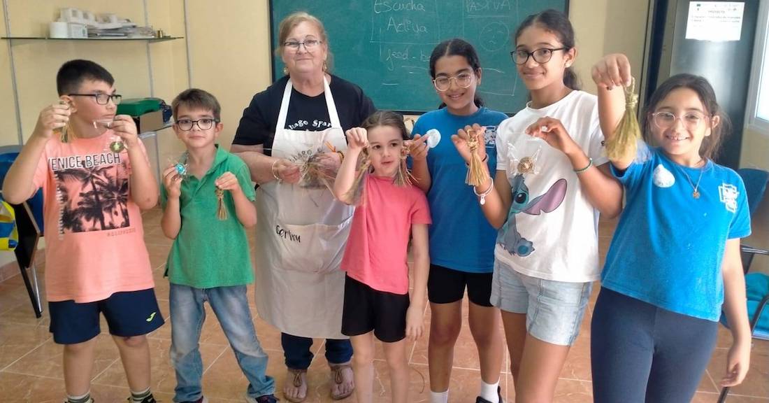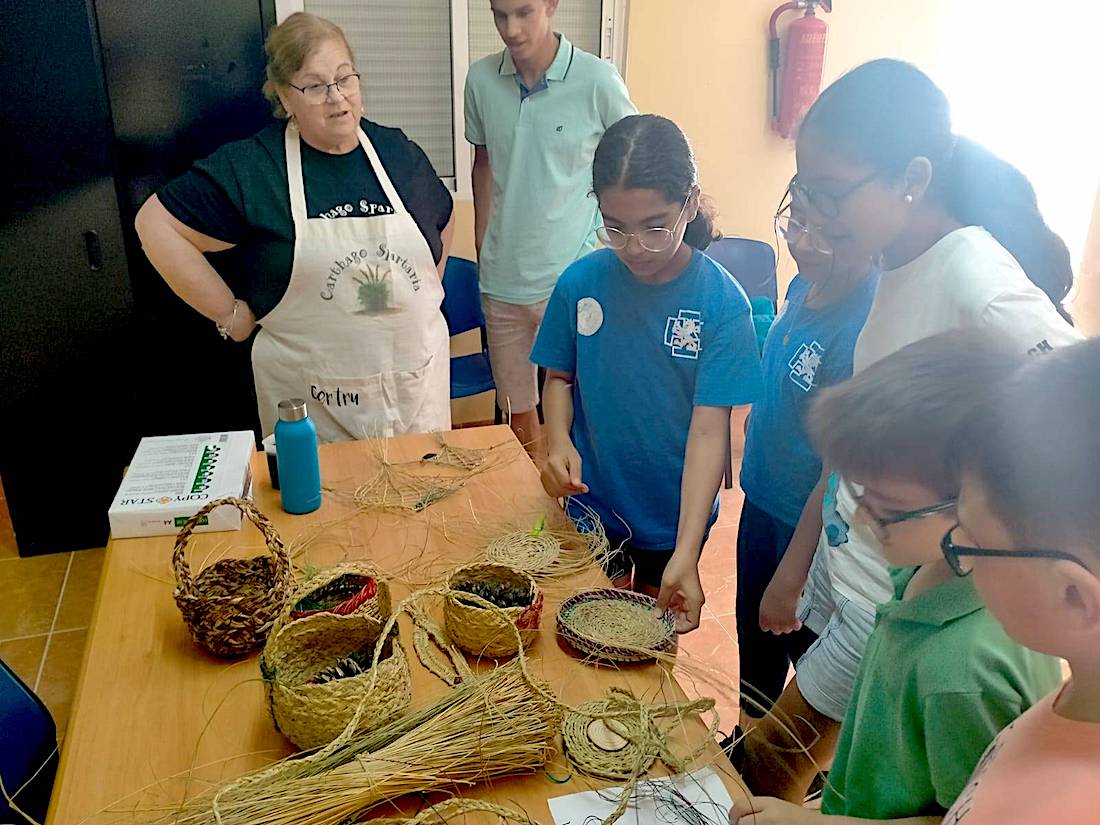 Varios chavales del Hogar Menor de La Unión de la Organización Juvenil Española participaron en una clase maestra de Gertru sobre el uso de fibras de plantas silvestres de nuestros campos.