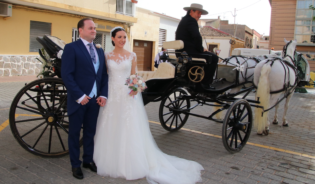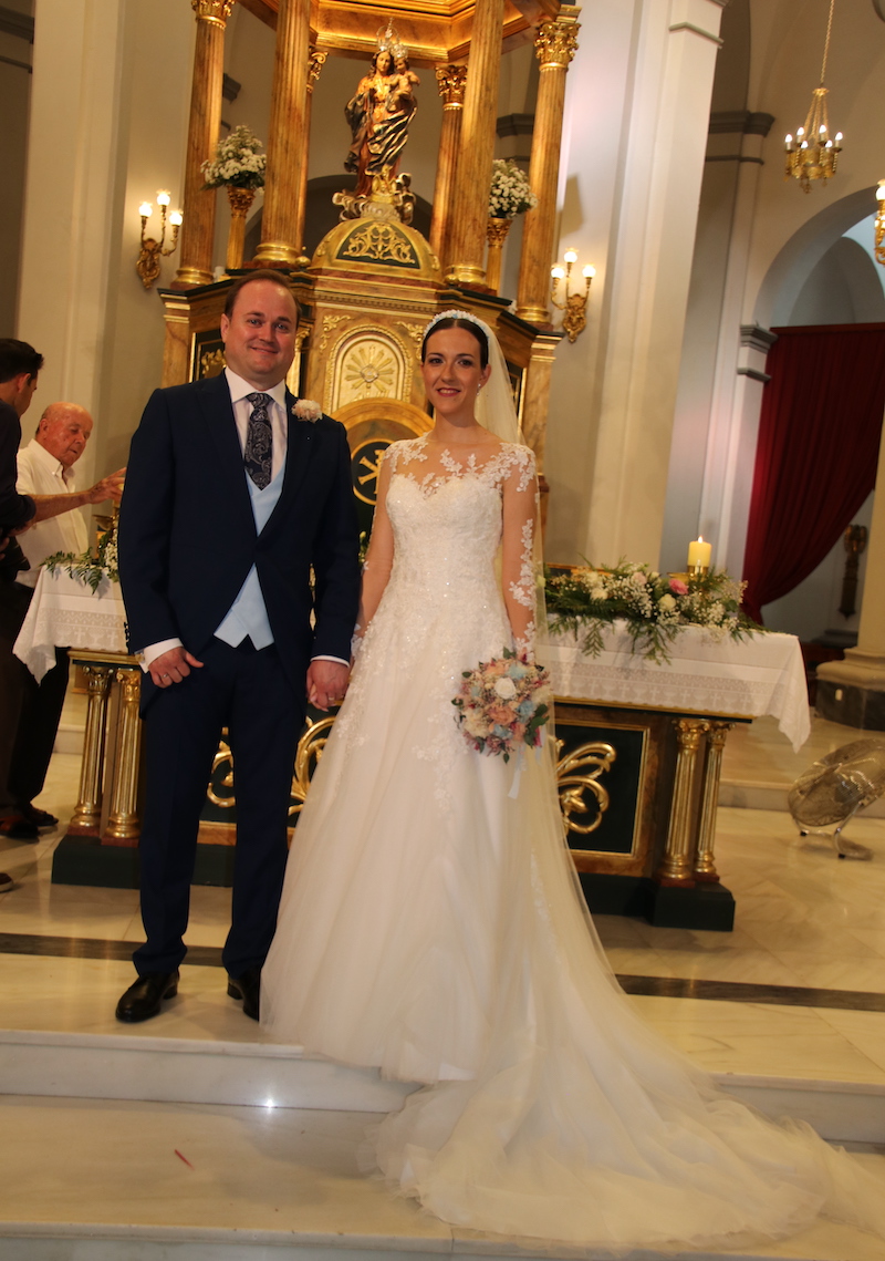 José Antonio y Laura (o viceversa) han contraído matrimonio matrimonio en la iglesia de Nuestra Señora del Rosario, en una ceremonia que fue oficiada por el párroco, Ginés Luis Vicente, y que contó con las voces de un coro rociero.