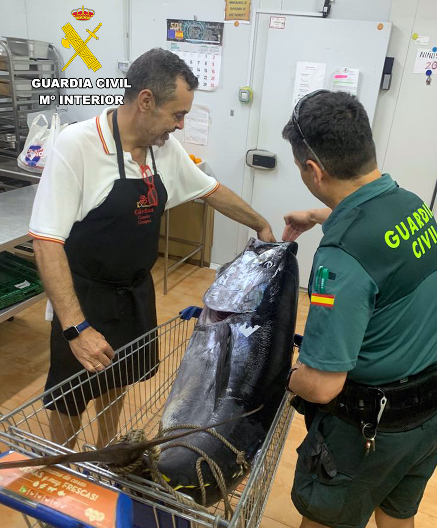El ejemplar, de 70 kilos de peso, había sido capturado sin autorización y que iba en oculto en una embarcación que navegaba en las inmediaciones de El Gorguel. Ambos han sido denunciados por la Guardia Civil por infracción grave a la Ley de Pesca. La actuación está enmarcada en el refuerzo de servicios para prevenir y perseguir la pesca clandestina de esta especie en el litoral.