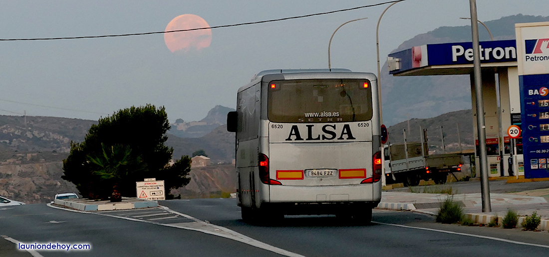 Visión que esta mañana ofrecía, hasta las siete y media y mientras salía el sol, la luna desde la entrada-salida de La Unión por la Esperanza.