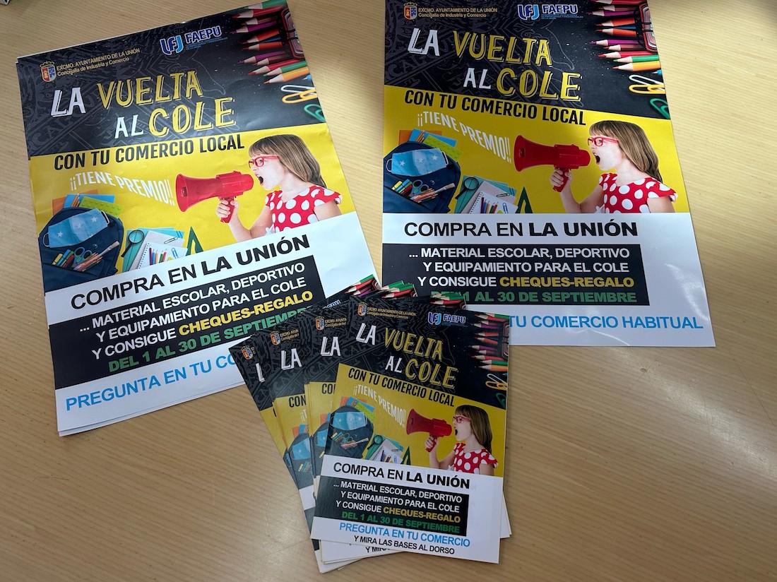 La campaña ‘La Vuelta al cole con tu comercio local tiene premio’ se llevará a cabo por los comercios de La Unión durante el mes de septiembre. El proyecto se ha realizado en colaboración con el Ayuntamiento de La Unión y la Federación de Asociaciones de Empresarios y Profesionales de La Unión.