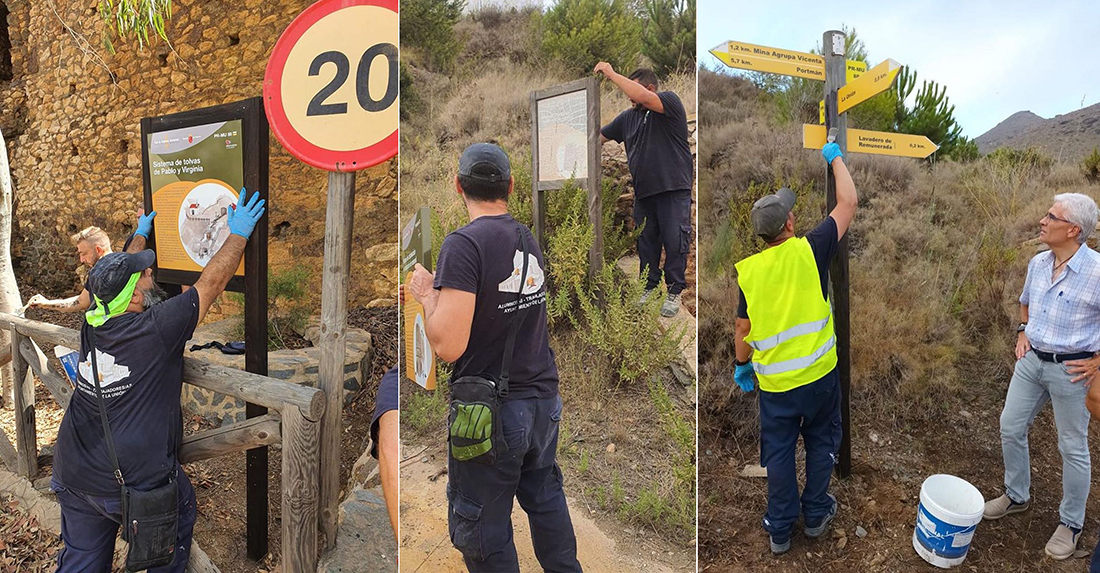 El Ayuntamiento de La Unión, en colaboración con PMEF (Programas Mixtos de Empleo y Formación enfocado a personas de 25 o más años) y con la subvención de la Comunidad Autónoma, ha renovado las señales del Parque Minero que se encontraban ilegible.
