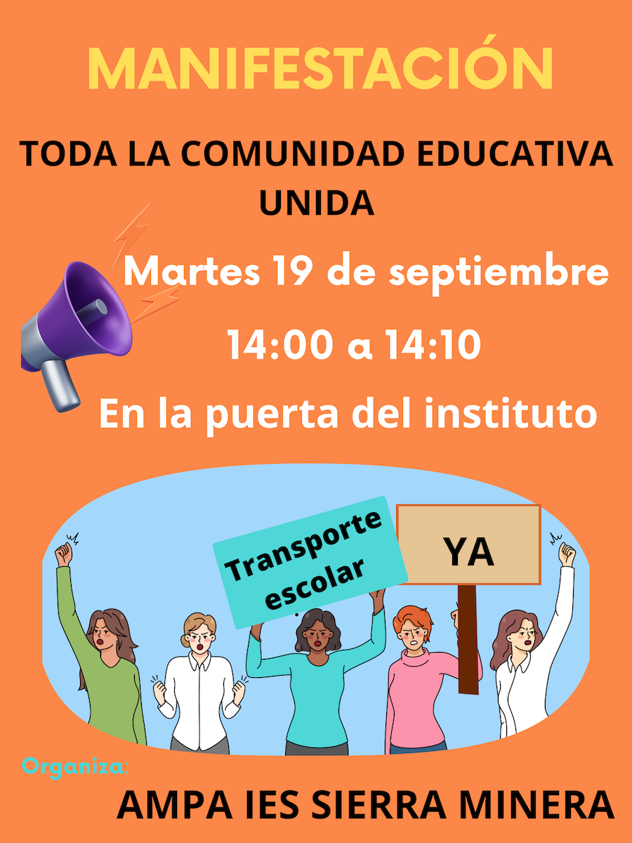Desde la AMPA del IES San Isidoro en Los Dolores, hemos asistido y apoyado la concentración de las madres, padres y alumnos de La Aljorra. El alumnado del pueblo que asiste tanto a nuestro instituto como al instituto del Bohío, es de los más afectados por la ausencia de transporte escolar.