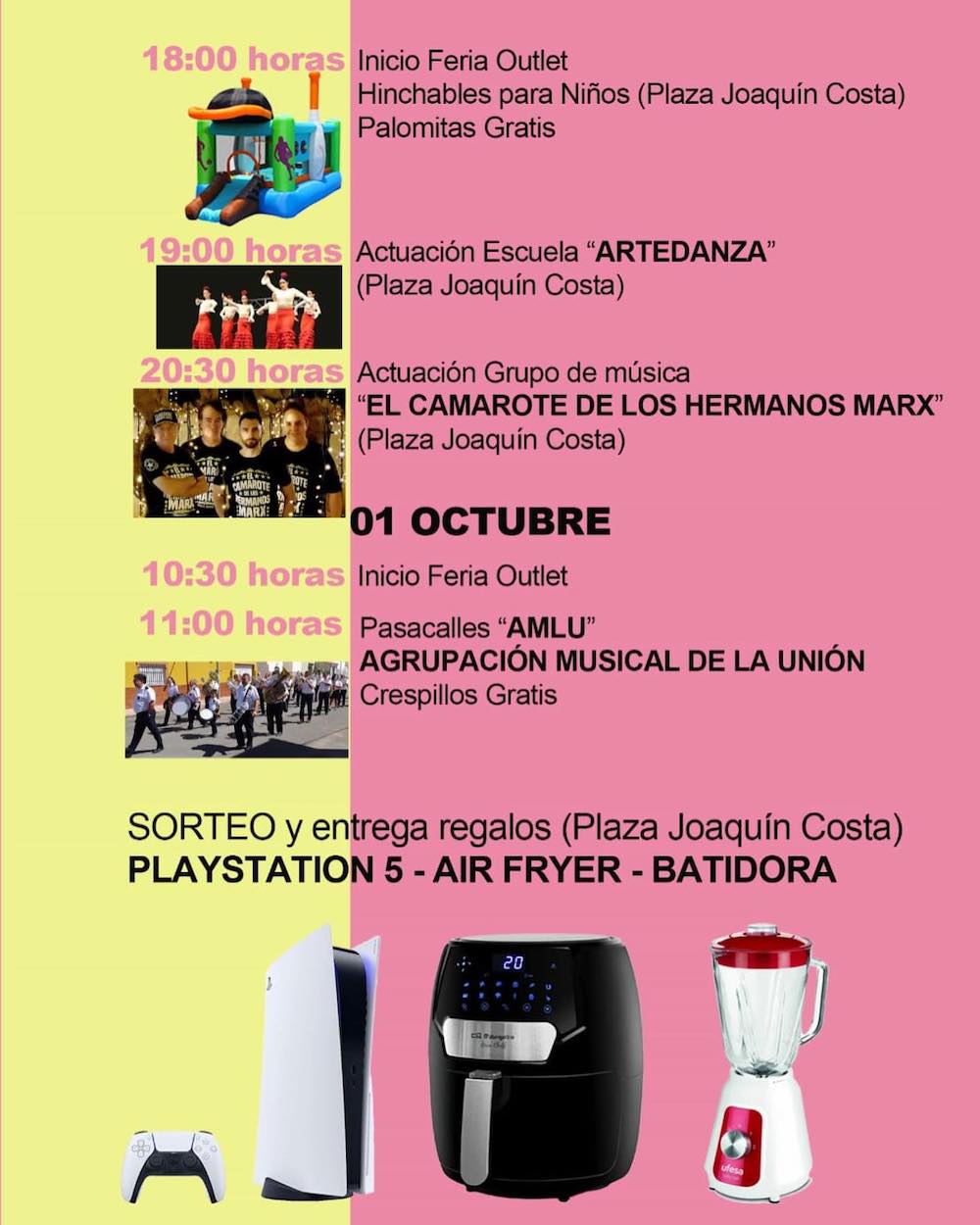 Diez son los comercios unionenses que se han apuntado a esta primera edición y los que se instalarán en las casetas instaladas en la plaza de Joaquín Costa los días 30 de septiembre y uno de octubre. Todos pondrá ofertas y, además, habrá regalos entre los que efectúen compras por un importe mínimo de 10 euros.