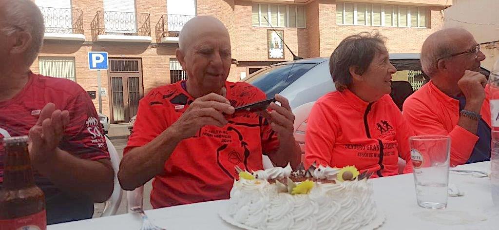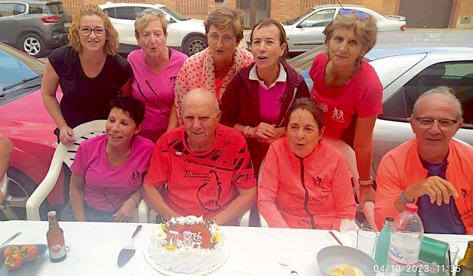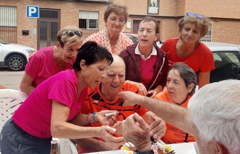 El colectivo senderista Vedruna Camina hizo un alto en su última ruta para celebrar el cumpleaños y la onomástica (entre ambas sólo hay tres días de diferencia) de su guía-jefe, Paco Munuera.