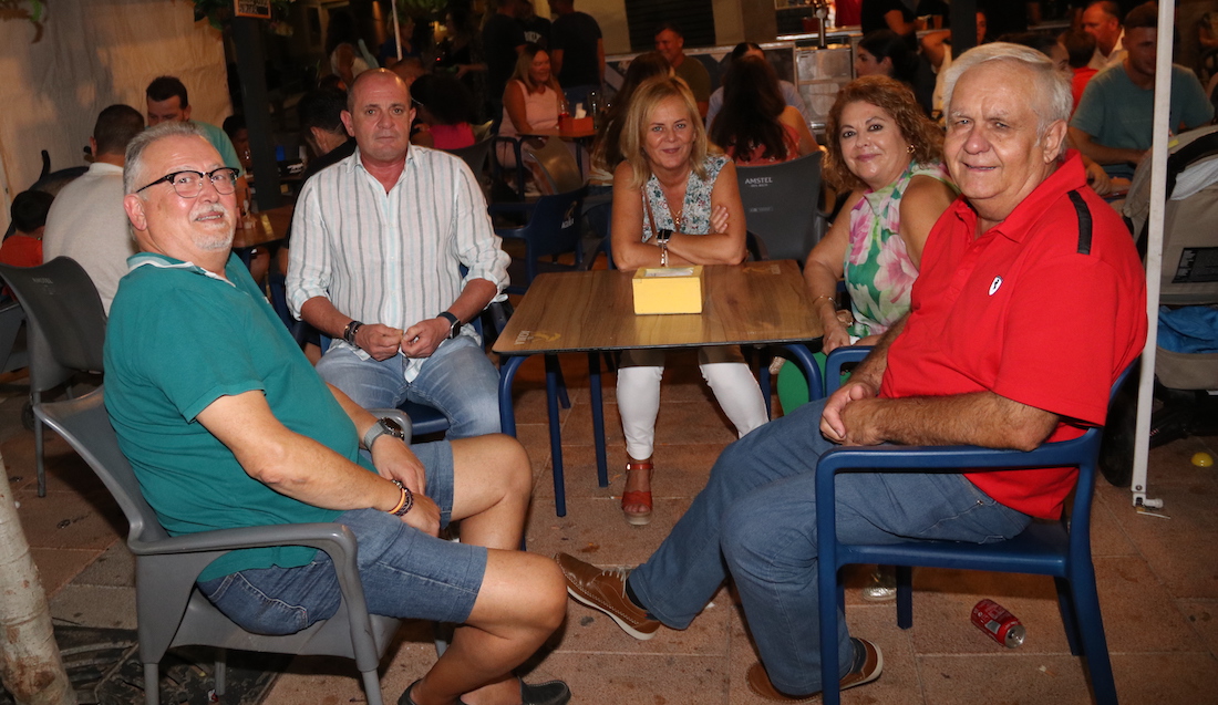 Paco, Ñoño, Toñi, Maricarmen y Alfonso compartiendo la primera noche de las fiestas del Rosario