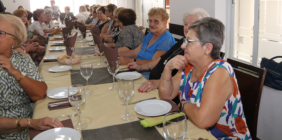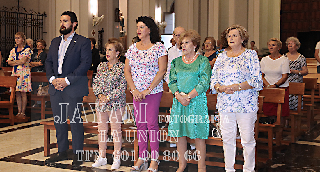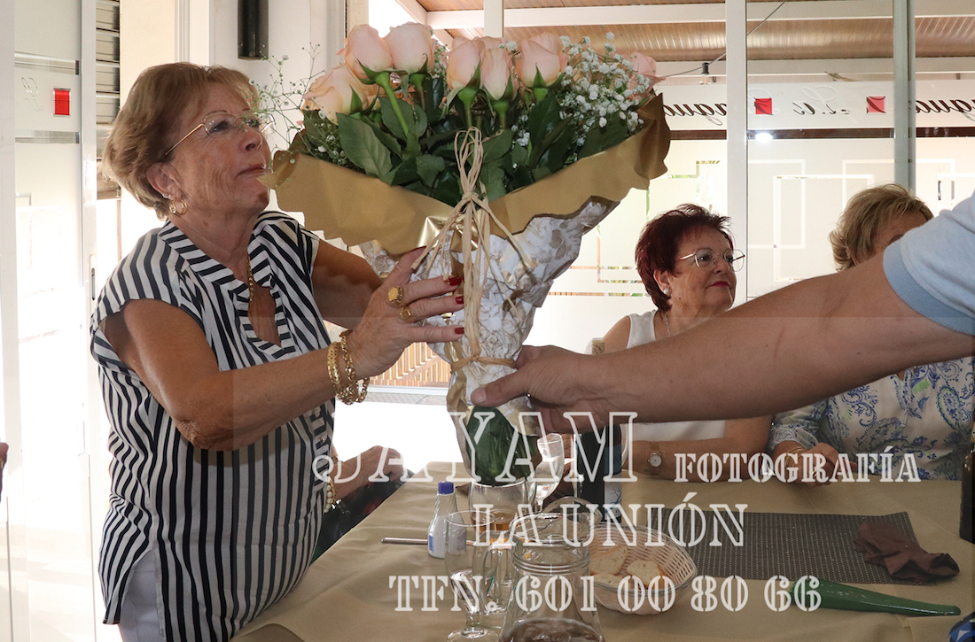La asociación unionense celebró una fraterna jornada de sus asociadas con un primer capítulo en la iglesia de Nuestra Señora del Rosario, donde tuvo lugar una ofrenda floral a la patrona, para después compartir mesa y mantel en un restaurante. El alcalde, Joaquín Zapata, acompañó a las unionenses en ambos actos.