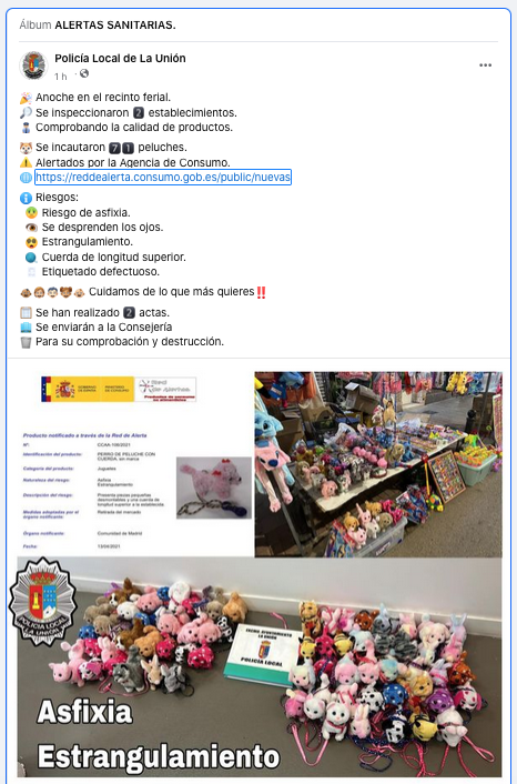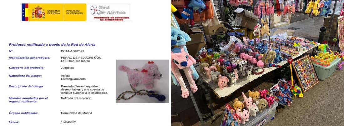 Se levantaron dos actas y se recogieron los peluches, que se enviarán a la consejería autonómica. La otra cara de la monera estaba en las personas que están en esos puestos. En uno de los casos se observa a una mujer que no dejaba de llorar tras la incautación del material y que, al parecer, adquirió esos productos sin saber que tenían una 'alerta' de peligrosidad y que no estaba autorizada su venta al público.