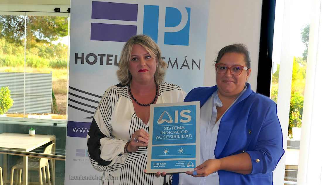 Hotel Portmán es el primero en el territorio autonómica que recibe dos 'Estrellas' del certificado internacional AIS (Accesibilidad y Responsabilidad Social). Durante el acto, la presidenta de la fundación y las autoridades locales y regionales han resaltado que es "un ejemplo a copiar", tanto por este logro como por sus otras apuestas, como son que su plantilla la integran personas con discapacidad y que el inmueble fue construido con materiales reciclados.