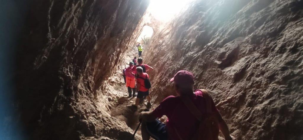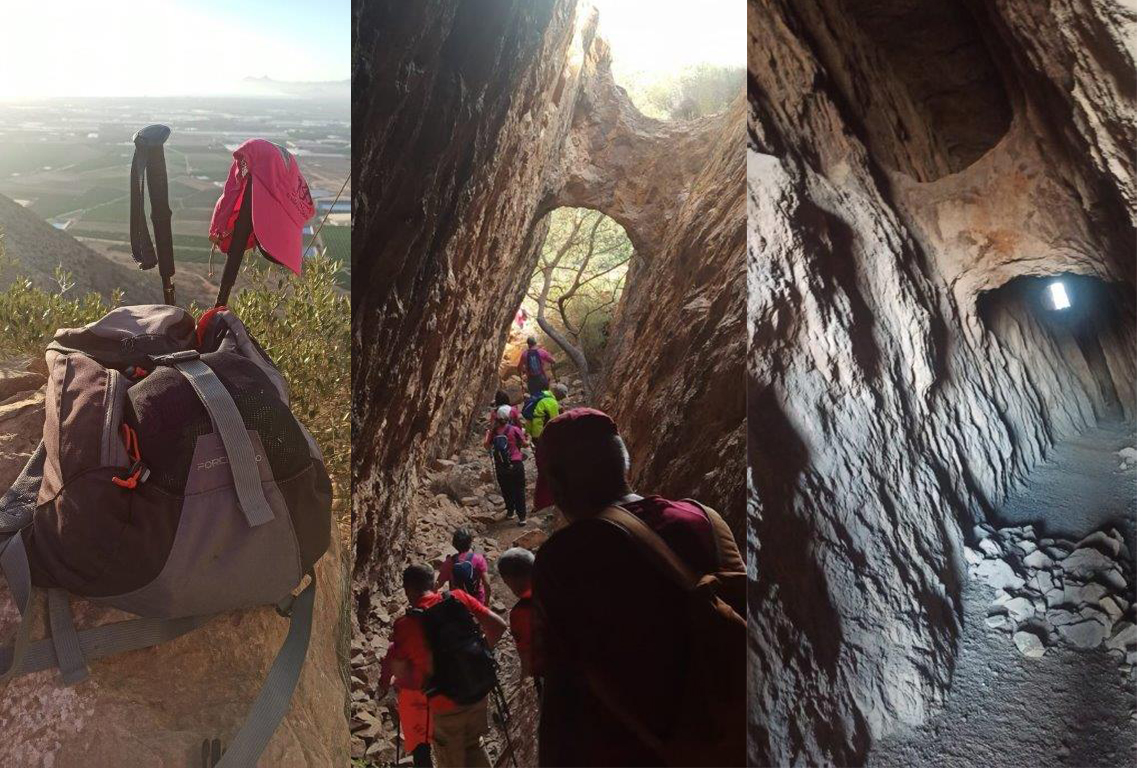... por el Cabezo Gordo, un monte un tanto abrupto, pero, con paciencia y cuidado, el colectivo senderista unionensee lo ha superado, empezando por 'el túnel de los champiñones', nombre que tiene su origen en que en otra época se criaba este tipo de hongo, para después dando un pequeño rodeo, dirigirse a la zona de la cantera, llevando a cabo la subida por ese lateral.