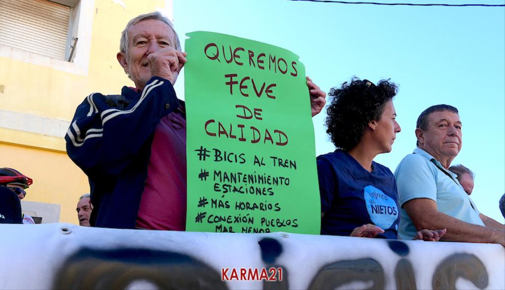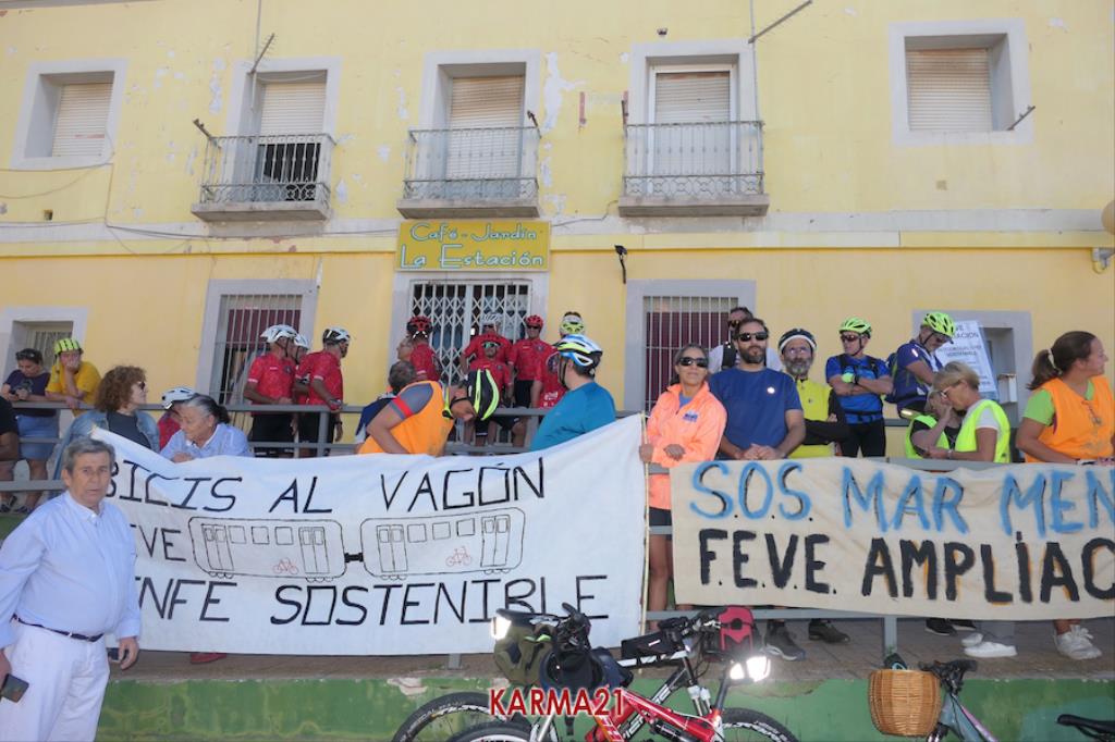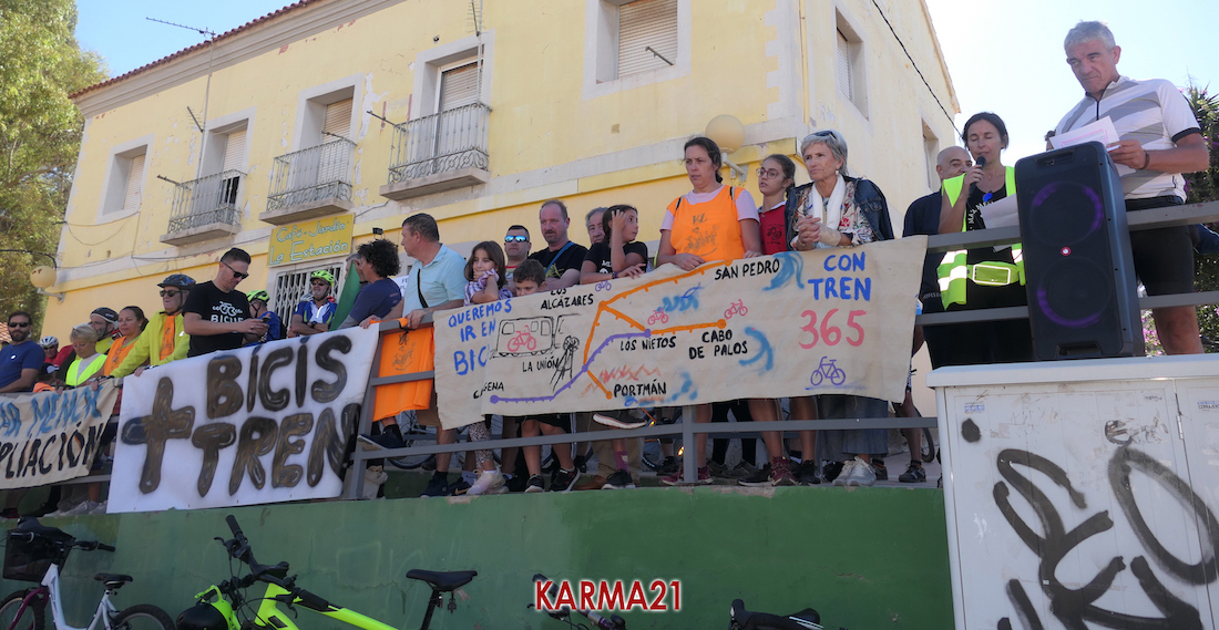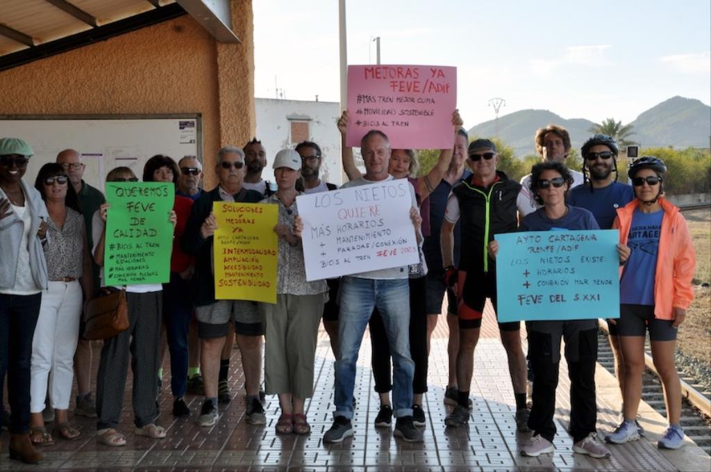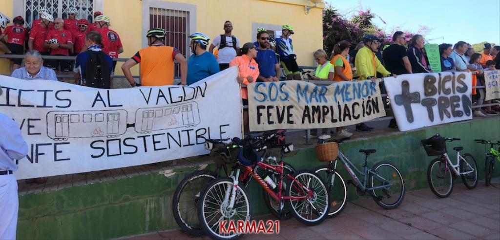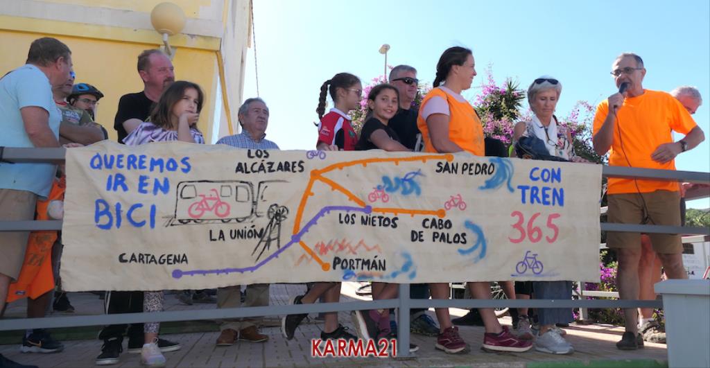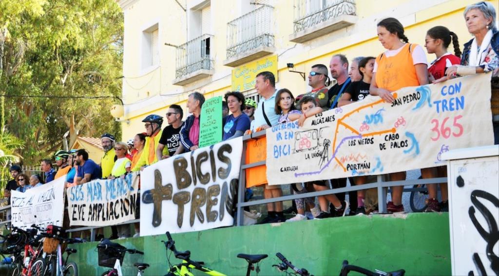 Este pasado verano, cuando en el tren de vía estrecha o ancho métrico no se permitió la entrada de bicicletas, comenzó una movilización que ha ido ampliando sus demandas en pos de que el saludable uso de la bicicleta tenga menos trabas y que, aprovechando esta demanda, se lleven a cabo medidas que potenciarán la comunicación entre las diferentes poblaciones del Mar Menor y Portmán con las ciudades de Cartagena y de La Unión.