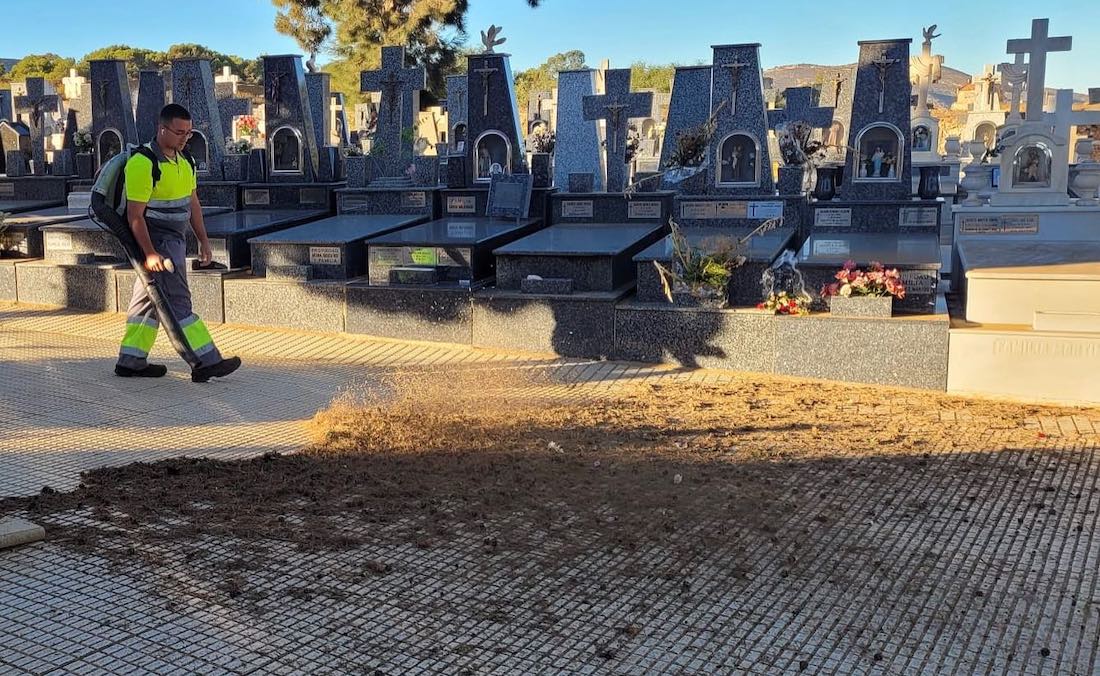 El Ayuntamiento de La Unión informa que esta mañana se han llevado a cabo las labores de limpieza y mantenimiento en los cementerios del municipio de cara a la festividad de 'Todos los santos'.