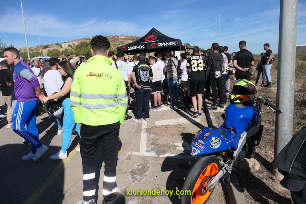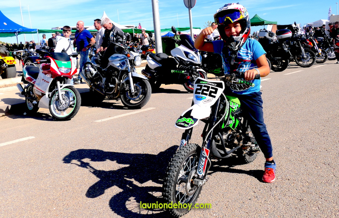 La décimo quinta edición del moto almuerzo del MC La Unión estrenó ubicación en la calle Mina La Colosal del polígono industrial, reuniendo a más de un millar de participantes en un gran campamento. En la foto, Eulogio, un chaval unionense de 7 años de edad que ha demostrado su destreza con la moto.