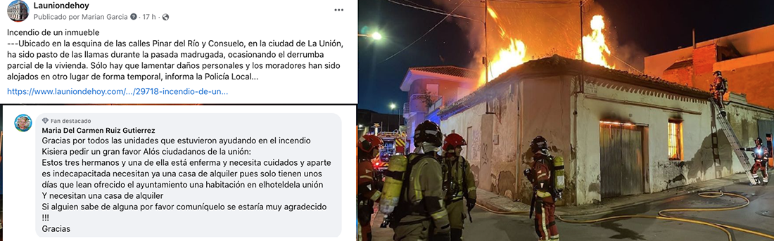 Piden ayuda para la familia afectada por el incendio de una vivienda en La Unión