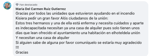 Una internauta ha escrito en los comentarios de la noticia de nuestro periódico que 'colgamos' en Facebook, indicando que el Ayuntamiento ha ofrecido a los tres hermanos (una de ellas está enferma y precisa cuidados) una habitación en un hotel, pero que, al ser una solución puntual, precisan una casa de alquiler, rogando a los que conozcan de inmuebles en esa situación que se lo hagan llegar.