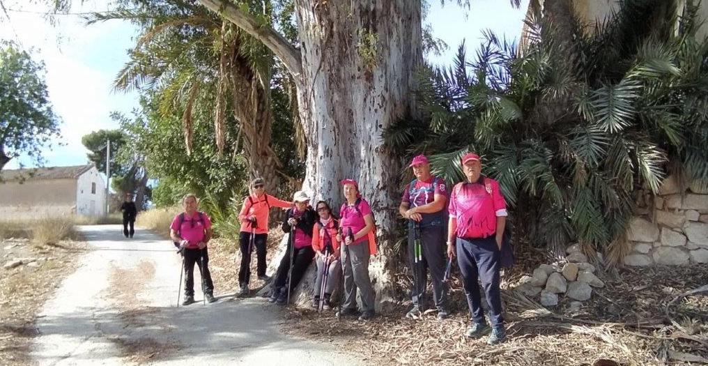 ... por la vecina localidad de Sangonera la Verde, comenzando la ruta en el eucalipto gigante, incluido en el catálogo de árboles monumentales de la Región de Murcia y cuyo perímetro mide casi siete metros. Después, el colectivo senderista unionense se dirigió a la rambla de Sangonera, con sus figuras en la roca.