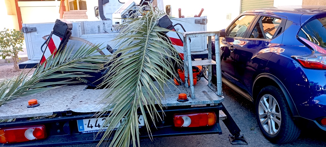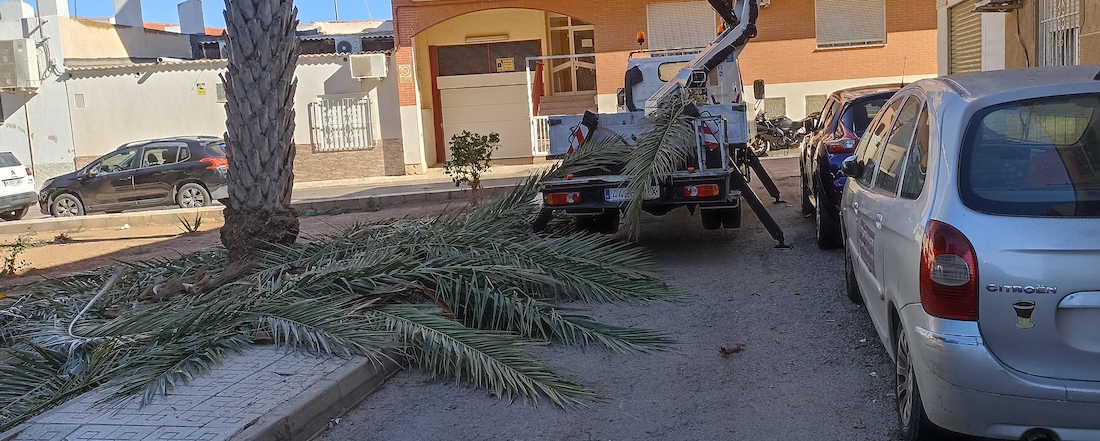 Vecinos de la calle Pineda de la Unión se dirigen a nuestro 'Buzón de los lectores' para expresar su malestar con USM (Unión Servicios Municipales) por llevar a cabo la poda de palmeras junto a vehículos aparcados, sin que se hubiese avisado en los días previos de retirarlos por esa actuación.