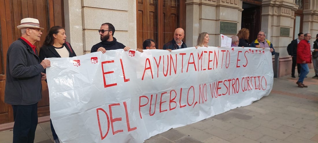 Izquierda Unida-Verdes había convocado la protesta de esta mañana contra lo denominan "el pacto de la paguita en La Unión". Al parecer, el gobierno local ha liberado a 7 ediles que no estaban en esa situación, que ahora cobrarán cerca de diecinueve mil euros al año 15 horas semanales de trabajo al consistorio.