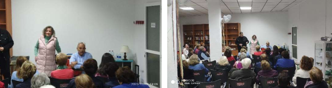Terminada la presentación, junto con los troveros Pedro Jesús López Salmerón e Irene Vicente Gilabert hemos tenido una encantadora velada trovera, la magia de la poesía improvisada inundo el salón en la Asociación de Amas de Casa. Los troveros, con habilidad y destreza, tejieron rimas ingeniosas sobre temas sugeridos por el público, creando un ambiente lleno de risas y asombro, cautivando a la audiencia con su destreza poética.