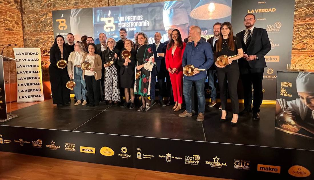 El castizo local hostelero de La Unión ha recibido la distinción de 'Mejor barra/taberna' en la octava edición de la octava edición de los galardones de la gastronomía de la Región de Murcia que organiza el diario La Verdad. En la foto, María Ángeles Lloret arropada por su familia tras recoger el premio.