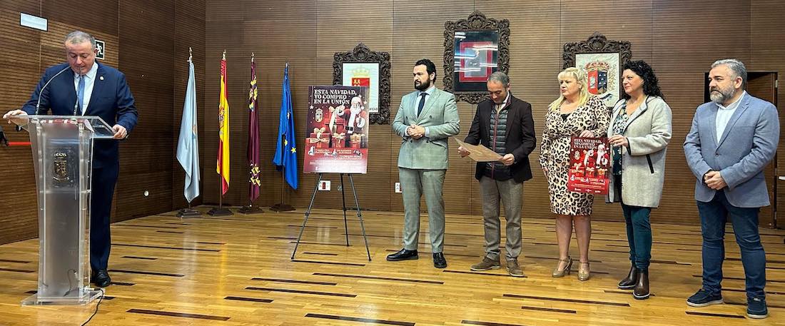 Es el lema de la campaña que se ha presentado esta mañana para impulsar el comercio local. La iniciativa, organizada por el Ayuntamiento y financiada por la Comunidad Autónoma en colaboración con la Federación de Asociaciones de Empresarios y Profesionales de La Unión (FAEPU), se celebrará del 5 de diciembre al 3 de enero de 2024.