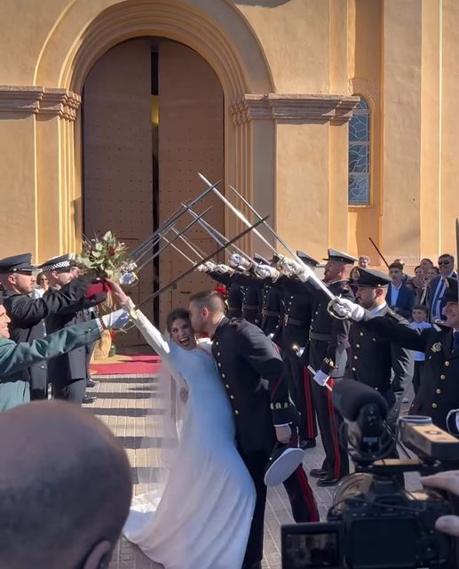 Diego Guerrero, del equipo de Protección Civil de La Unión, ha contraído matrimonio en la iglesia de Nuestra Señora del Rosario. A la salida de la feliz pareja del templo, compañeros y amigos crearon un pasillo de sables por donde pasaron.