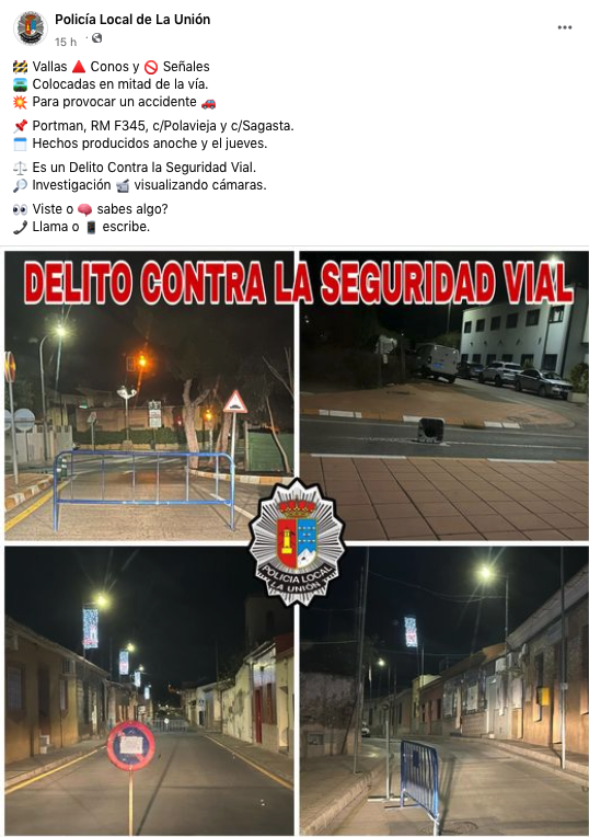 Un coche haciendo trompos, un menor que se subió por la noche al techo del centro de salud, quejas por la música alta de un local, una multa de 80 euros por ir en dirección prohibida, un conductor que se puso nervioso tras no respetar una señal y lanzó un objeto a suelo, por lo que también fue sancionado por ensuciar la calle… Son algunas actuaciones de las últimas fechas de los agentes municipales de La Unión, aunque hay bastantes más, algunas tan graves como descubrir que en calles de Portmán habían colocado objetos en mitad de la vía para provocar accidentes.