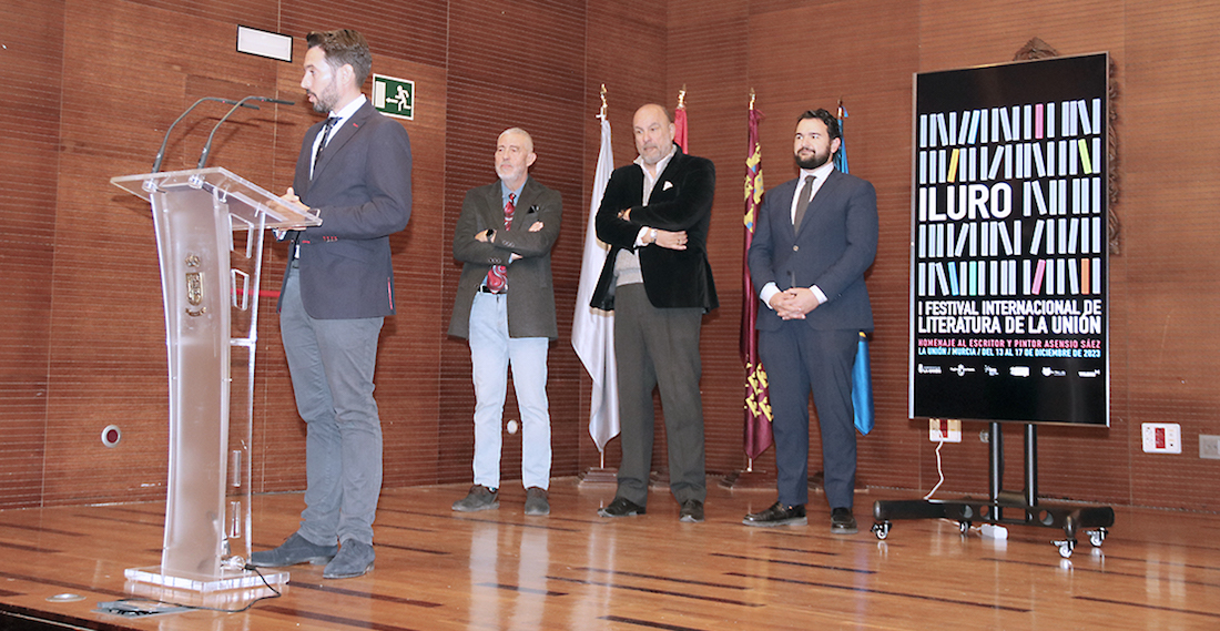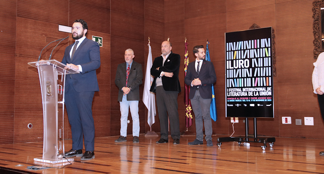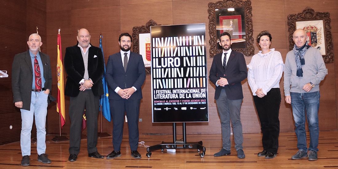 El alcalde ha presentado, junto con el director general de Patrimonio Cultural, José Francisco Lajara Martínez, el director del festival, Victorio Melgarejo y los coordinadores del mismo, José Belmonte y Esteban Bernal, el I Festival Internacional de Literatura ‘ILURO’ que se celebrará del 13 al 17 de diciembre en La Unión.