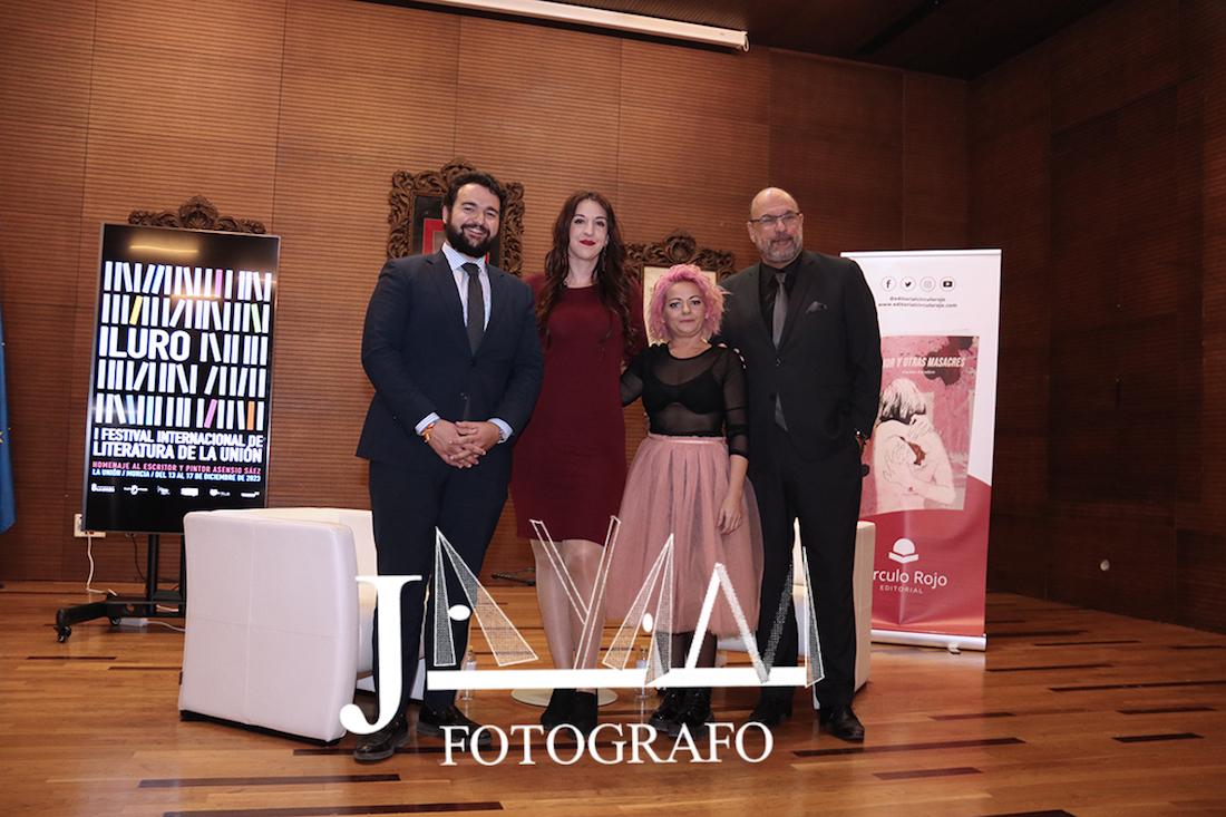 La primera jornada del festival comenzó con la presentación de la escritora de San Pedro del Pinatar, Carmen Escudero, que ha departido con la periodista, cantante y escritora Lidia Martín sobre su libro 'Amor y otras masacres', así como de su disco, una bonita obra con una grandiosa banda de musicos.