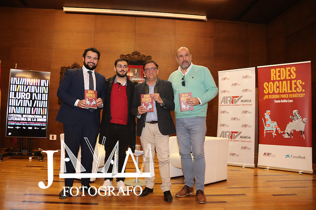 La tercera jornada del 'I Festival internacional de literatura de La Unión 'iLuro'- Homenaje a Asensio Sáez' arrancó con la presentación del libro 'Redes sociales: ¿Un segundo poder mediático?', escrito por el periodista murciano Tomás Guillén, quien ve como las redes se comen (o ya se han comido) a la prensa escrita en papel, apuntando que hay que reciclarse para combatir esta situación. También analizó cómo influyen las redes sociales en los distintos medios.