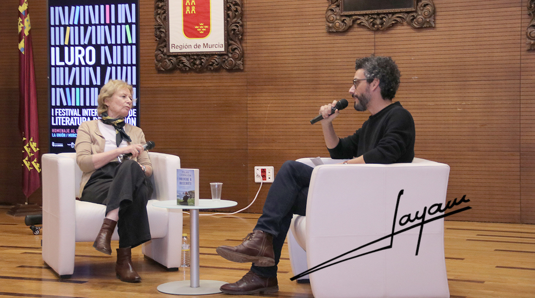 La tarde comenzaba con una escritora de lujo, Pilar Cernuda, que mantenia coloquio con el periodista Ruben García Bastida, quienes han presentado la última obra de la periodista, "Volveré a buscarte".