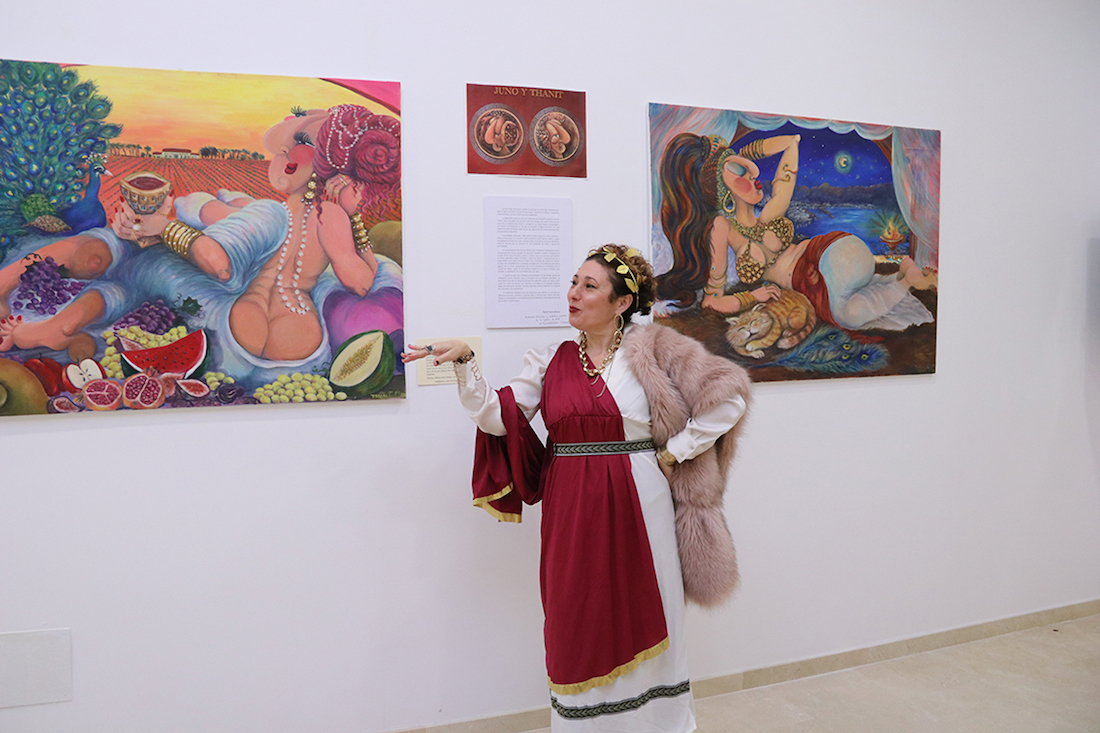 El Museo Etnográfico ofrece la exposición de 'Hijas de Juno y Tanit', con obras que la pintora unionense ha centrado en la época de los romanos y los cartagineses, por lo que ha titulado la muestra con los nombres de dos de sus principales dioses, respectivamente.