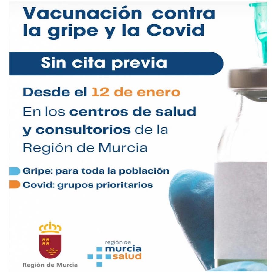 Desde ayer se puede solicitar la vacunación contra la gripe y la Covid en todos los centros de salud y consultorios de la Región de Murcia, sin necesidad de cita previa.